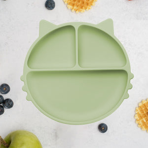 Farfurie compartimentata din silicon cu ventuza, AppeKids - Kitty - Raw Green