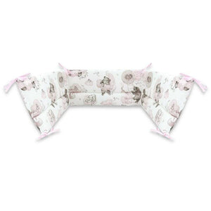 Aparatoare pentru patut, Qmini, Din bumbac certificat Oeko Tex Standard 100, 210x30 cm, Cu panglici, Teddy Bear and Friends Pink