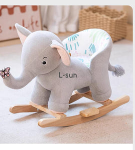 Balansoar sub forma de animal de plus, cu roti din lemn, cu muzica distractiva, elefantel