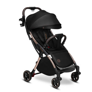 Carucior sport, Lionelo, Julie One, De la nastere, Greutate redusa, Cu accesorii, Cadru din aluminiu, 0-22 kg, Pliere compacta pentru avion, Conform cu standardele europene de securitate EN1888-1 si EN1888-2, Negru/Auriu
