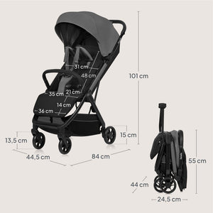 Carucior sport, Lionelo, Julie Air, Greutate redusa - 7.5 kg, Sustine 22 kg, 6 luni+, Capotina impermeabila, Protectie SPF 50+, Include suport sticla, Pliere compacta pentru calatorii, Conform cu EN1888-1 si EN1888-2, Negu Onyx