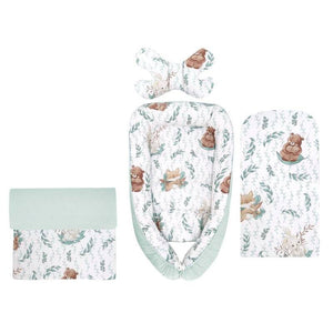 Set 4 in 1 Cosulet bebelus, MimiNu, Baby Cocoon 75x55 cm, Husa bumbac, Din bumbac certificat Oeko Tex Standard 100, Cu paturica 50x70 cm, Cu salteluta, Cu perna fluture, Lulu Natural