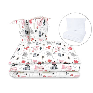 Lenjerie patut cu 5 piese, MimiNu, Pentru patut 120x60 cm, Cu pilota si perna, Din bumbac certificat Oeko Tex Standard 100, Fox