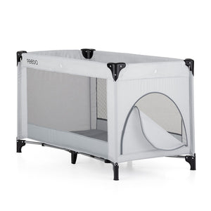 Patut de calatorie, Feedo, Pliabil, Cu geanta de transport inclusa, Cu intrare laterala si inchidere prin fermoar, Greutate maxima suportata 15 kg, 0-30 luni, Gri deschis