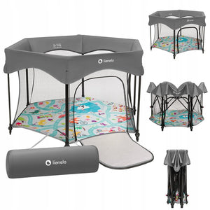 Tarc de joaca, Lionelo, Roel Plus, Pliere ultra-compacta, Sistem LockGuard impotriva plierii accidentale, Geanta de transport inclusa, Conform cu EN 12227:2010, 134x134x74 cm, 6 luni+, Multicolor