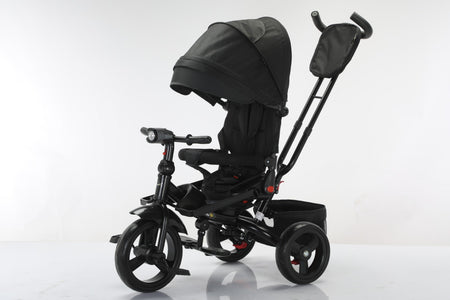 Tricicleta multifunctionala, L-Sun Star, Ansamblu muzica si lumini led, Geanta Mamici, Coș jucarii, NEGRU