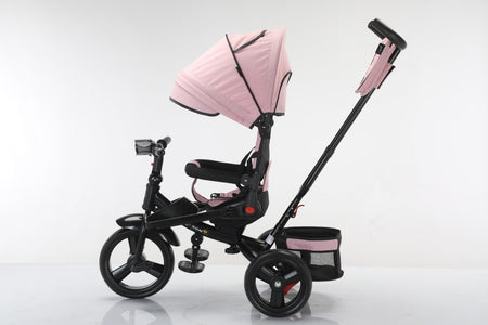 Tricicleta multifunctionala, L-Sun Star, Ansamblu muzica si lumini led, Geanta Mamici, Coș jucarii, ROZ